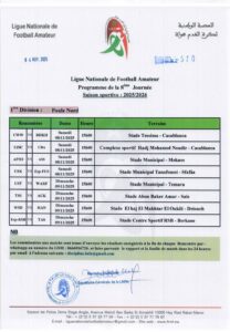أعلنت العصبة الوطنية لكرة القدم هواة ، عن البرنامج الأسبوعي لأقسام الهواة، الجولة السابعة من بطولة القسم الوطني هواة، والجولة الثامنة