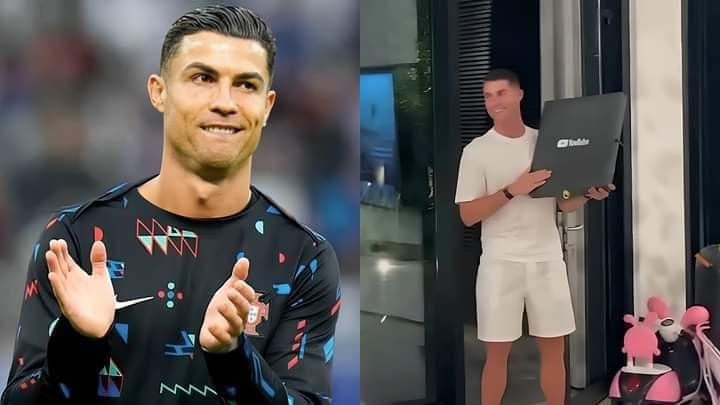 رونالدو يتسلم الدرع الذهبي من اليوتوب بعد بلوغه 10 ملايين متابع بساعات على فتح حسابه