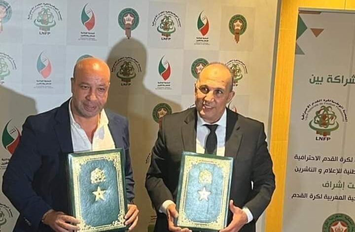 تحت إشراف الجامعة الملكية المغربية لكرة القدم توقيع اتفاقية شراكة بين العصبة الوطنية لكرة القدم الاحترافية والجمعية الوطنية للإعلام والناشرين لتنظيم التغطيات الإعلامية بالدوري المغربي الاحترافي الأول لكرة القدم