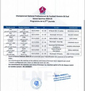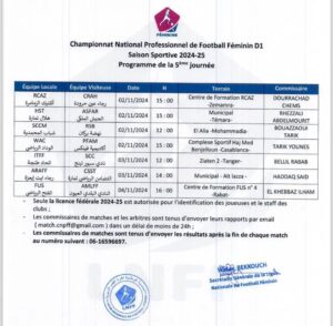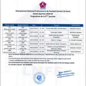 وستجرى جميع المباريات ايام السبت والأحد 02 و03 نونبر 2024.
