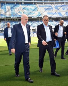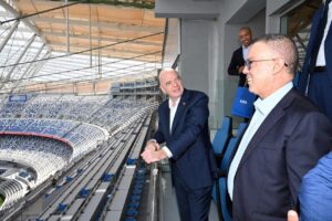 قام السيد جياني ايفانتينو بزيارة الى مدينة طنجة الى جانب السيد فوزي لقجع رئيس الجامعة الملكية المغربية لكرة القدم حيث تفقدا الأشغال الجارية بالملعب الكبير لمدينة طنجة والتي أشرفت على نهايتها في زمن قياسي بحضور السيد يونس التازي والي طنجة .