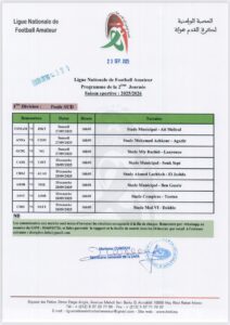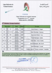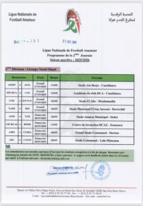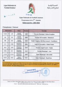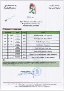 أعلنت العصبة الوطنية لكرة القدم هواة ، عن البرنامج الأسبوعي لأقسام الهواة، الجولة الأولى من بطولة القسم الوطني هواة، والجولة الثانية من بطولة القسم الأول هواة شطر الشمال والجنوب، والقسم الثاني هواة شطر الشمال الشرقي والشمال الغربي والجنوب والصحراء،