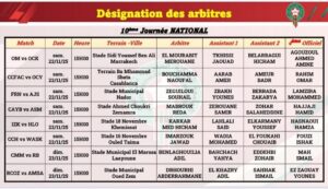 كشفت مديرية التحكيم عن أسماء الحكام الذين سيقودون مباريات الجولة التاسعة من بطولة القسم الثاني والعاشرة من القسم الوطني هواة, والتي ستقام مبارياتها أيام السبت والأحد 21-22 نونبر 2025.