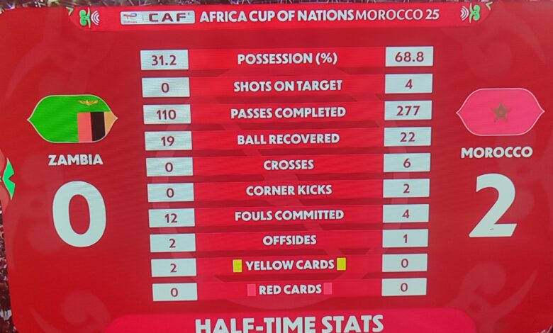في إطار منافسات كأس إفريقيا للأمم “توتال إنرجي 2025”، وعن المجموعة الأولى، أنهى المنتخب الوطني المغربي الشوط الأول من مباراته أمام منتخب زامبيا متقدماً بهدفين دون رد، في شوط عرف سيطرة واضحة للنخبة الوطنية ونجاعة هجومية مميزة.