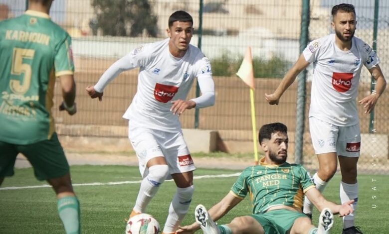 عاد فريق المغرب التطواني بنتيجة التعادل السلبي أمام مضيفه أمل تزنيت ، في مباراة القمة التي جمعت بينهما بملعب المسيرة بمدينة تزنيت، لحساب الجولة 13 من منافسات البطولة الإحترافية بالقسم الثاني ..