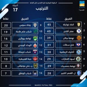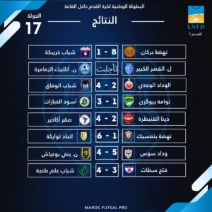 نتائج وترتيب الجولة 17 من البطولة الوطنية للفوتسال