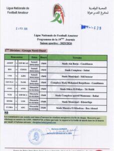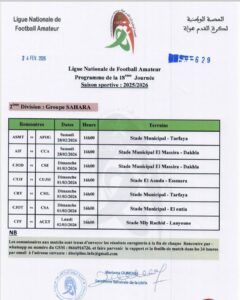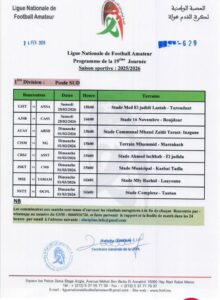 أعلنت العصبة الوطنية لكرة القدم هواة ، عن البرنامج الأسبوعي لأقسام الهواة، الجولة 19 من بطولة القسم الوطني هواة والقسم الأول هواة شطر الشمال والجنوب، والقسم الثاني هواة شطر الشمال الغربي والجنوب والجولة 18 شطر الشمال الشرقي
