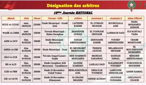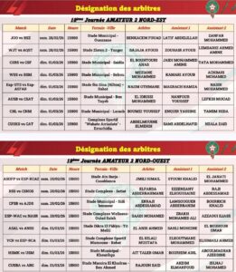 كشفت لجنة الحكام التابعة للعصبة الوطنية هواة، عن أسماء الحكام الذين سيقودون مباريات الجولة 19بطولة القسم الوطني هواة والقسم الأول هواة والثاني هواة شطر الشمال الغربي والجنوب، والجولة 18 شطر الشمال الشرقي والصحراء ، والتي ستجرى مبارياتها أيام السبت والأحد 28 فبراير و01 مارس 2026